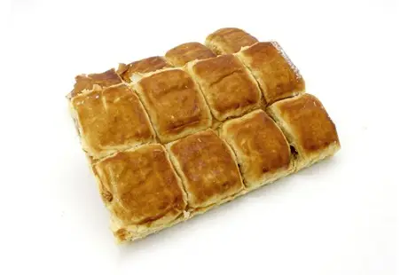 Knapperig bladerdeeg gevuld met het beste gehakt en in kleine stukjes verdeeld om te serveren bij de borrel